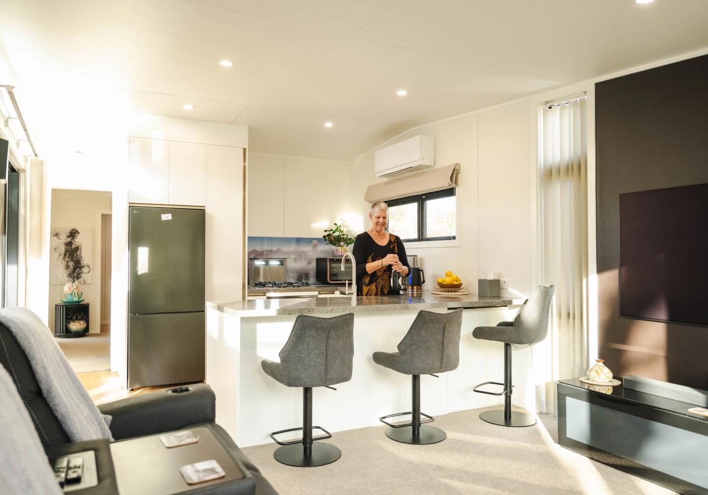 В Новой Зеландии компания South Base Homes совместно с архитектором Крисом Паймонтом представила проект Bespoke Base — мини-дом, который по уровню комфорта и планировке ближе к полноценной квартире, чем к традиционному «tiny house».
