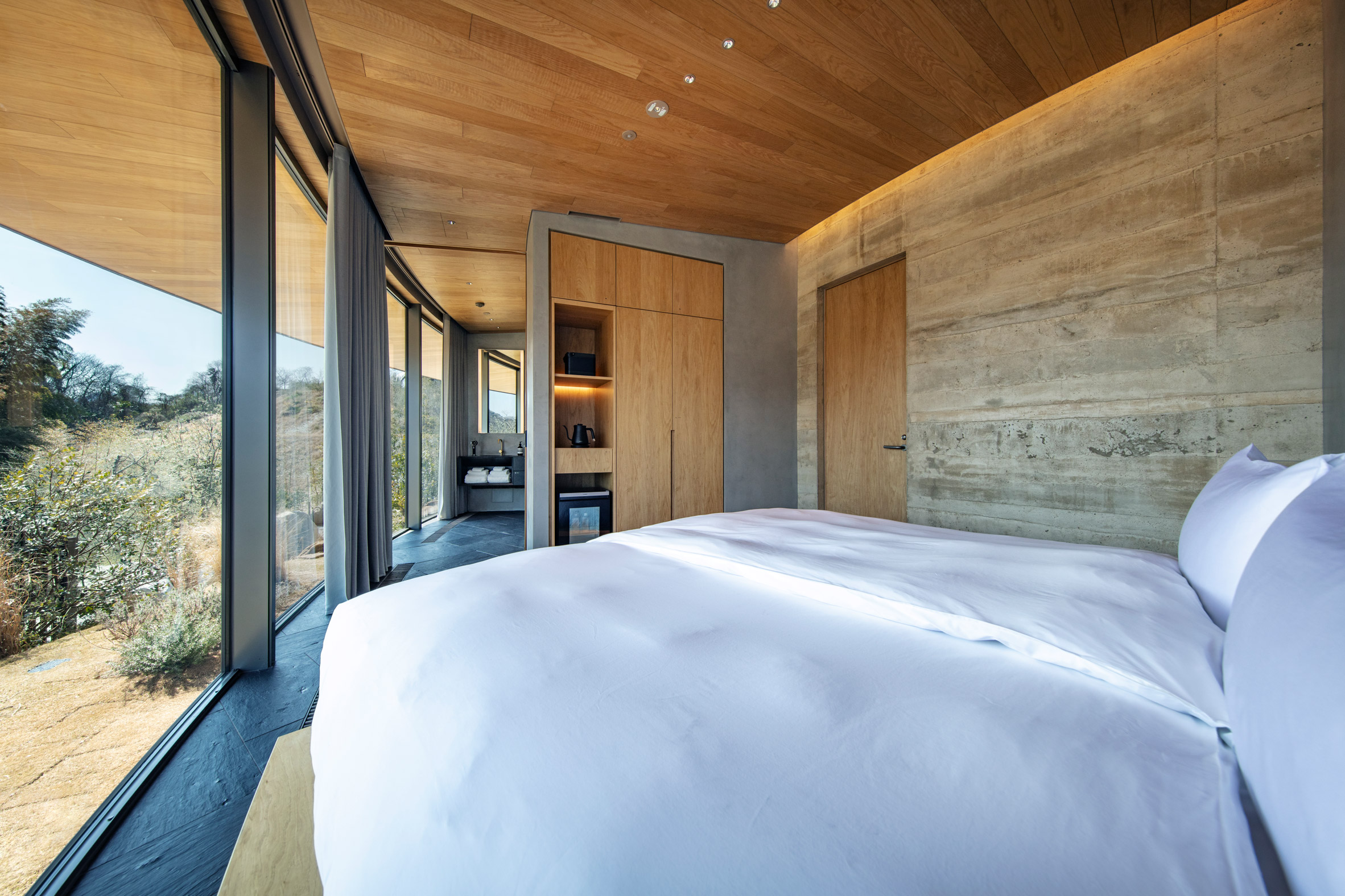 Виллы размещены на участке площадью около 30 000 кв. м на побережье Внутреннего моря Сето. Рядом с ними находится ресторанный павильон и частный пляж, а сама архитектура задумывалась как естественное продолжение окружающего ландшафта.