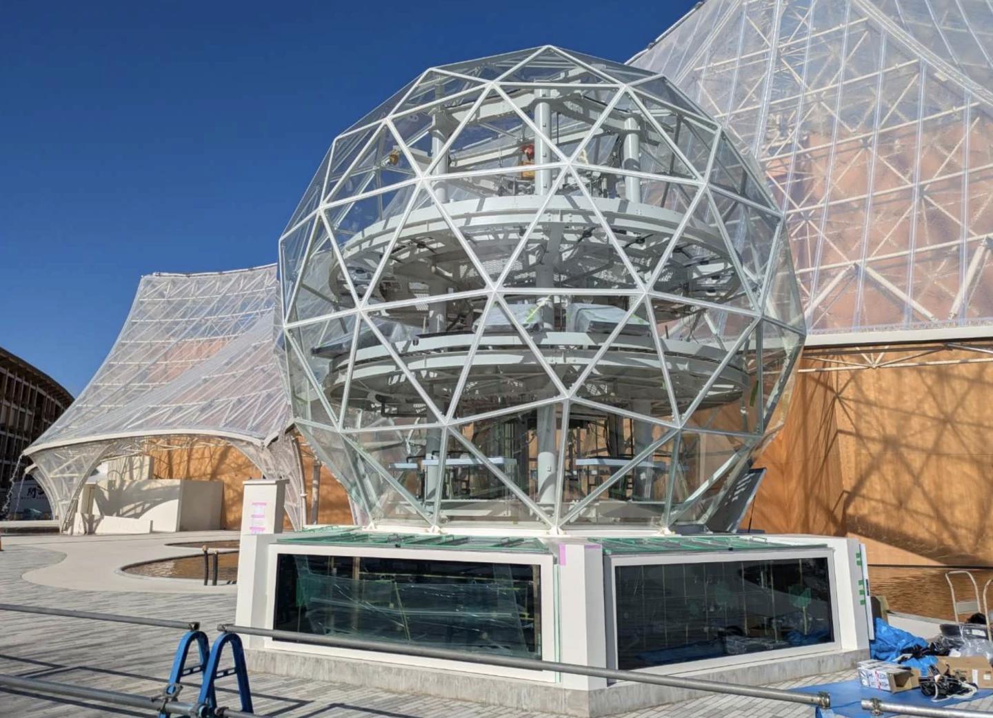 Купол высотой 6,4 м и диаметром 7 м, расположен на основании, содержащем четыре различные водные зоны, которые обеспечивают живой двигатель этой замкнутой экосистемы. Сам купол имеет площадь поверхности 128 кв. м и состоит из прозрачных панелей (ETFE) в качестве внешней оболочки, поддерживаемых системой T-STAR от VikingDome, состоящей из 245 стальных конструкционных стержней, соединенных 76 соединениями на сфере и 10 на основании. Вся конструкция, вместе с материалами, доставленными на площадку на трех поддонах, весит внушительные 2111 кг.