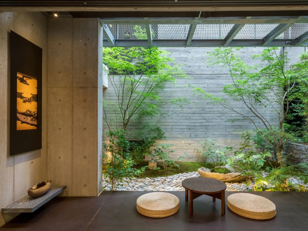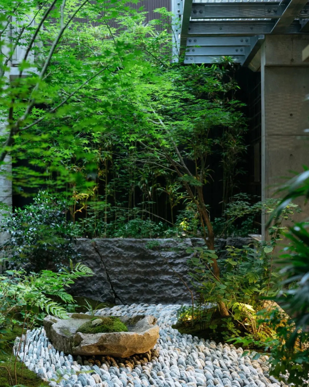 Ключевая идея — принцип Тэйоку Ичинё, означающий единство здания и сада. Здесь сады — не декор, а полноценная часть архитектуры. Они направляют движение, формируют виды и наполняют пространство жизнью. Даже небольшие внутренние сады создают ощущение глубины и связи с природой.
