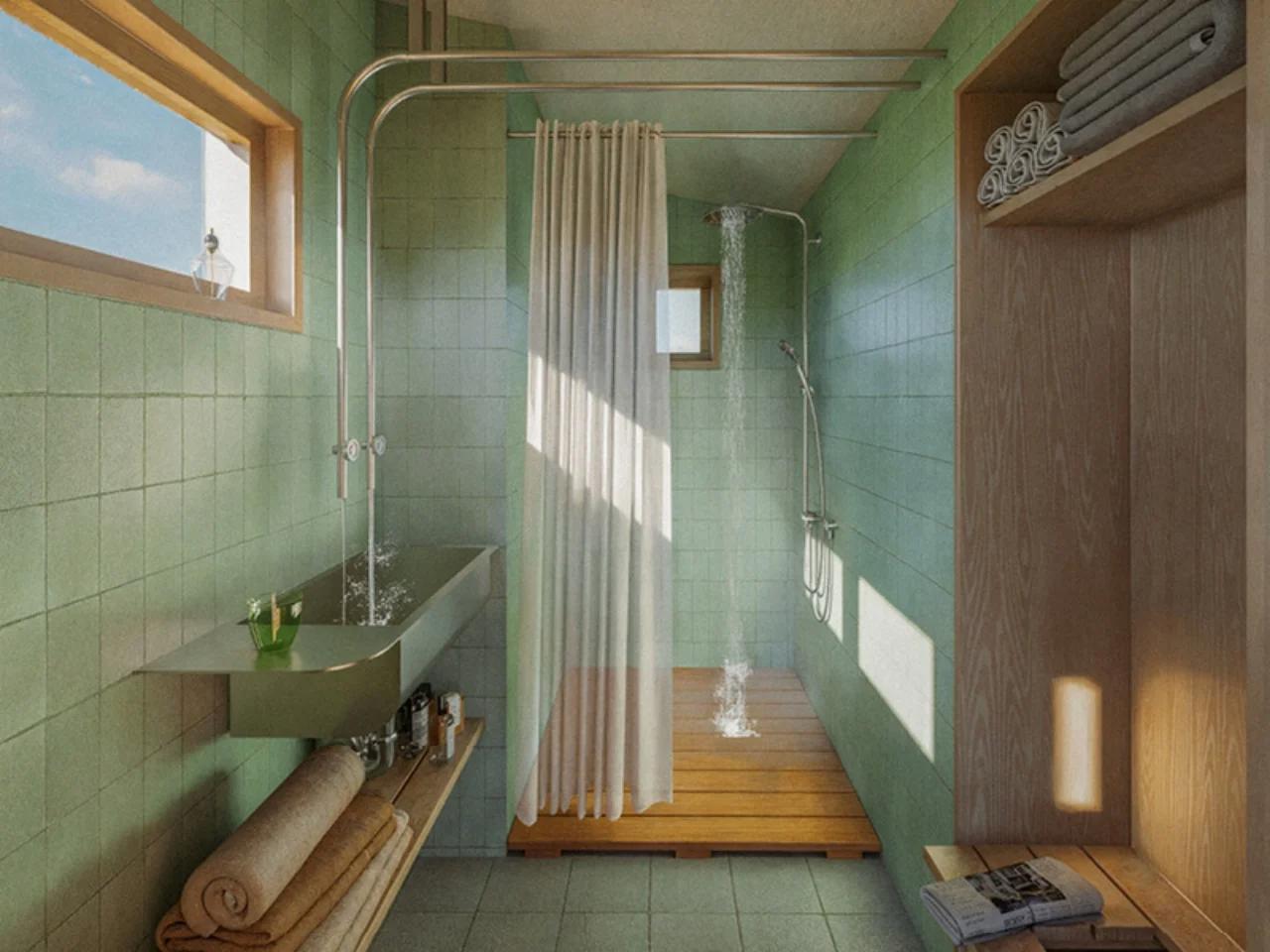 Проницаемый фасад обеспечивает естественное освещение и связь с природой, адаптируясь к сезонным изменениям — летом создавая прохладу и вентиляцию, а зимой сохраняя тепло. Внутреннее пространство организовано максимально рационально: спальня расположена в стиле лофт, освобождая первый этаж для жилой и рабочей зоны.