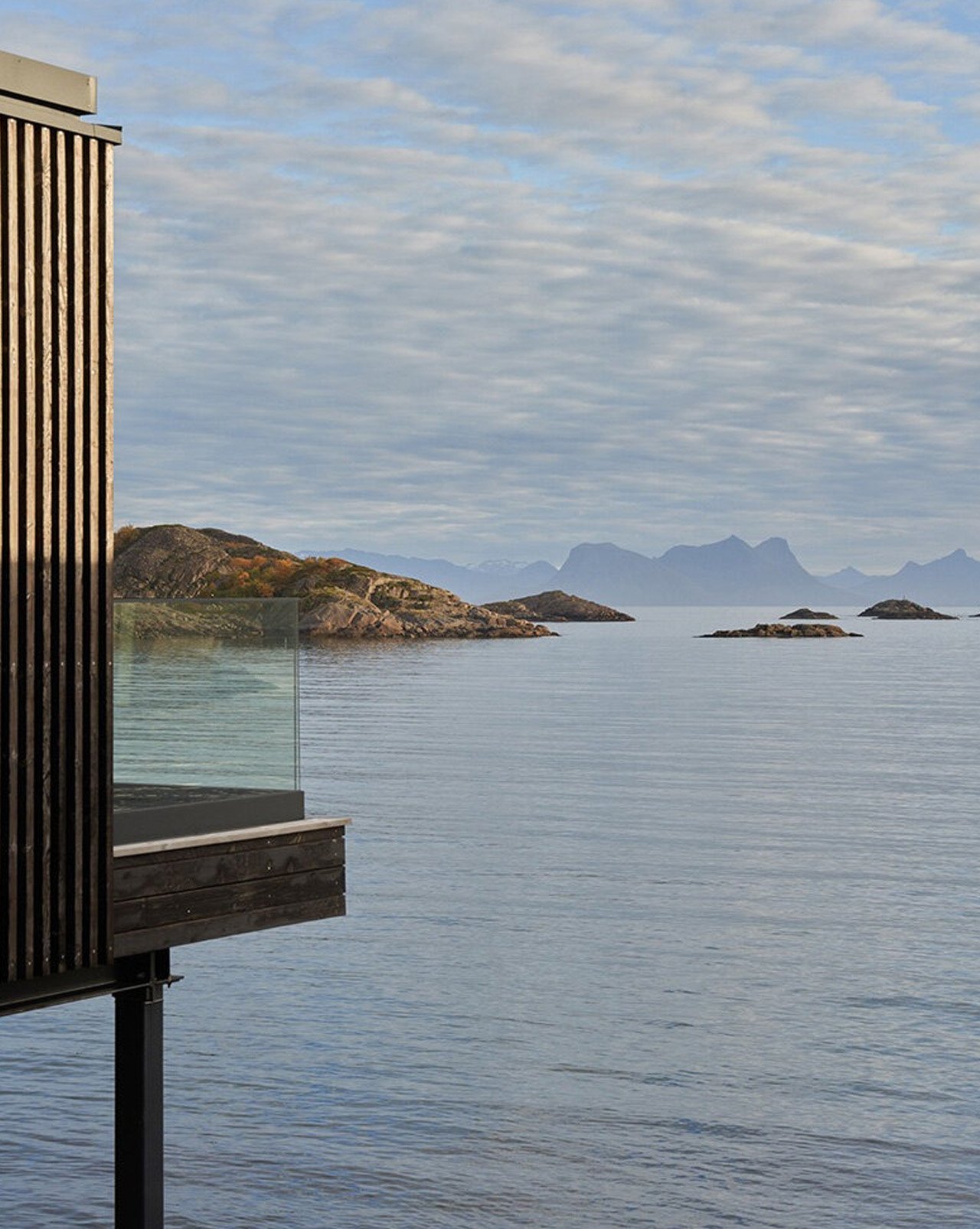 Гостевой дом, получивший название Lofoten Guesthouse, напоминает современную рыбацкую хижину на сваях. Проектирование гостевого дома было поручено норвежской студии LOGG ARKITEKTER. Архитекторы создали здание, который одновременно выглядит абсолютно современным и глубоко укорененным в местных традициях. Эти сваи — не просто декоративный элемент, а прямой намёк на домики рорбуэр, в которых жили поколения рыбаков, работавших в этих водах. Их лодки покачивались рядом с простыми деревянными навесами, поднимающимися и опускающимися вместе с приливом.