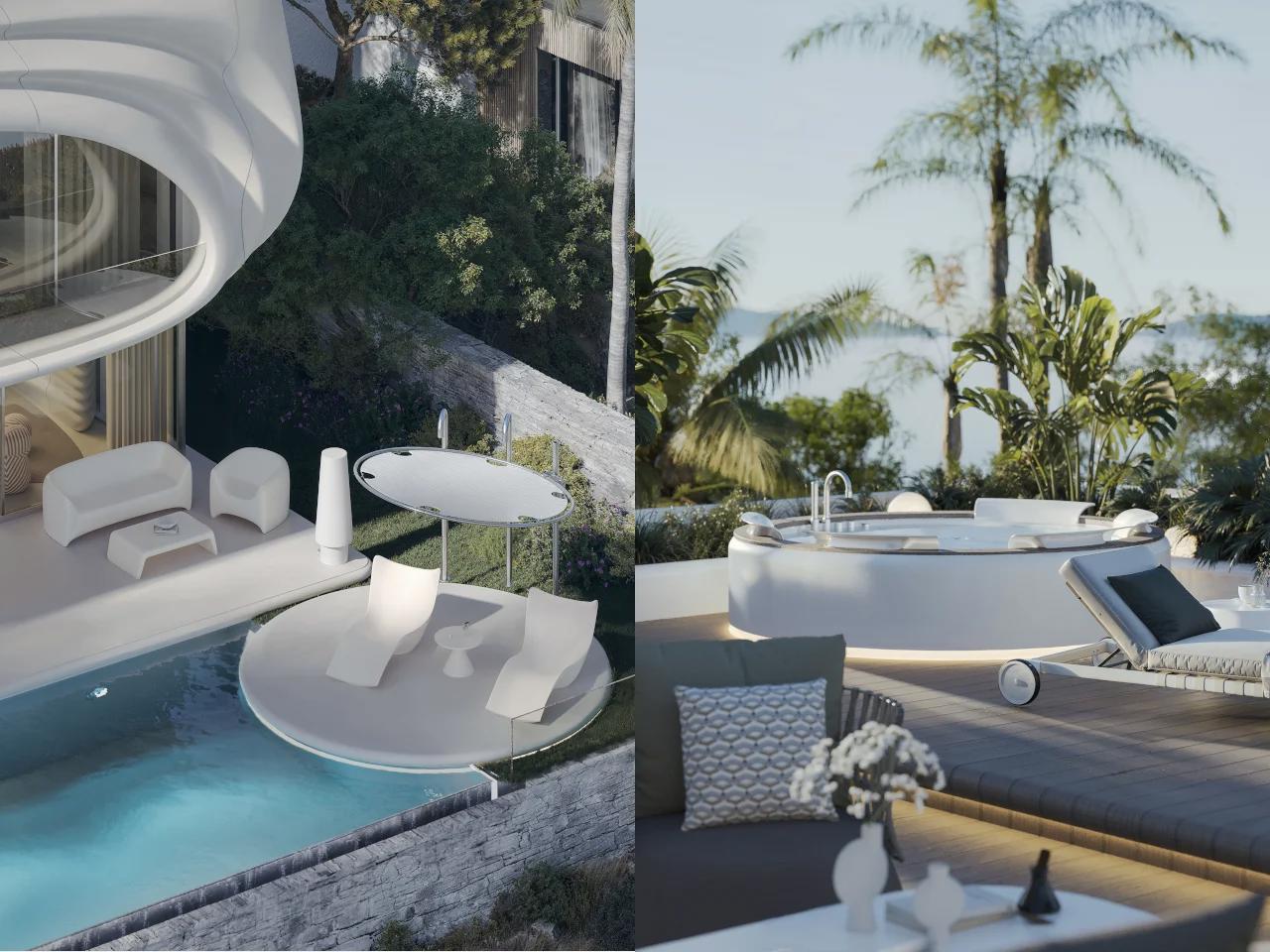 Большинство вилл на холмах Марбельи выполнены как нейтральные белые объемы с плоскими крышами и стеклянными ограждениями, где главное — вид на море. Проект PERLA предлагает противоположный подход: здесь дом задуман как выразительный скульптурный объект, напоминающий застывшую морскую волну, закреплённую на склоне.
