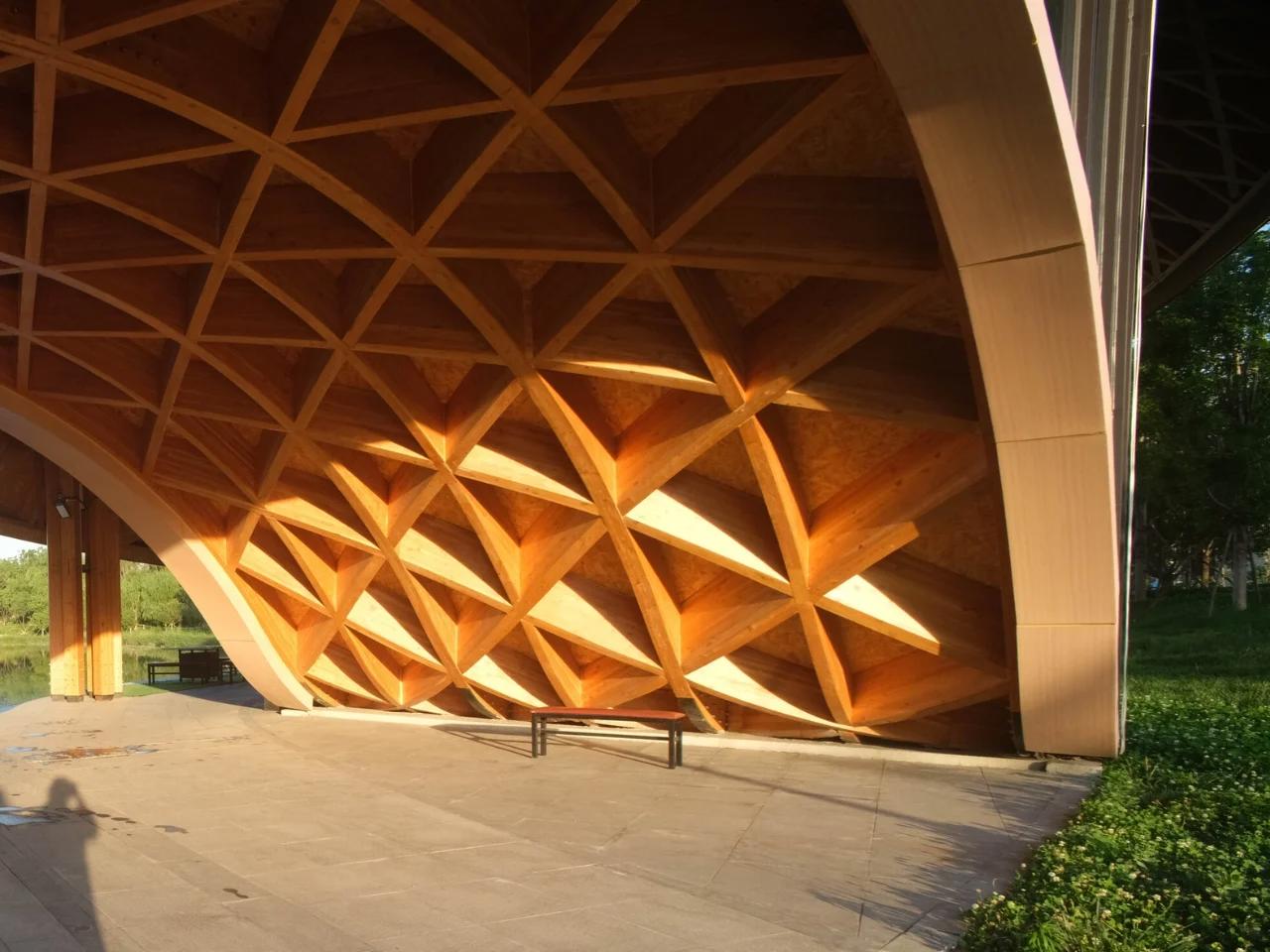Первое, что ощущается в ресторане Lakeside в Парк Дружбы Шелкового пути в Динчжоу, — это его удивительная сдержанность. Здание не стремится доминировать над пространством и не конкурирует с окружающей природой. Оно словно возникает у кромки воды само по себе: деревянные колонны поднимаются вверх и расходятся, как кроны деревьев.