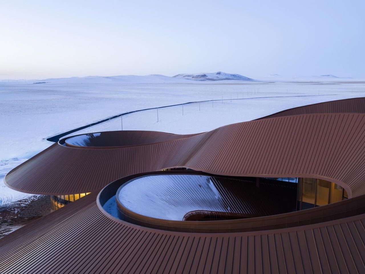 На южной окраине степи Силингол на севере Китая архитектура не противопоставляет себя природе, а продолжает её. Туристический центр под названием «Вулкан в степи» (Volcano In Visitor Center), спроектированный архитектурным бюро PLAT ASIA, встроен в структуру потухшего С-образного вулкана, сформировавшегося около 150 000 лет назад. Архитектура здесь выступает как часть геологического процесса, а не как автономный объект.