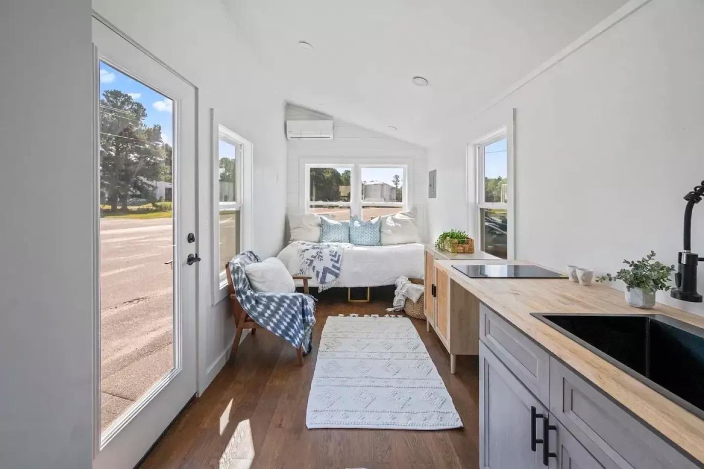 Этот небольшой дом на колесах напоминает о первоначальной идее движения tiny house — простое, мобильное и доступное жилье. Рассчитанный на проживание одного человека или пары, он отличается компактными размерами и минималистичной планировкой. При этом стоимость дома составляет всего около 39 000 долларов, что делает его одним из более доступных вариантов на рынке.
