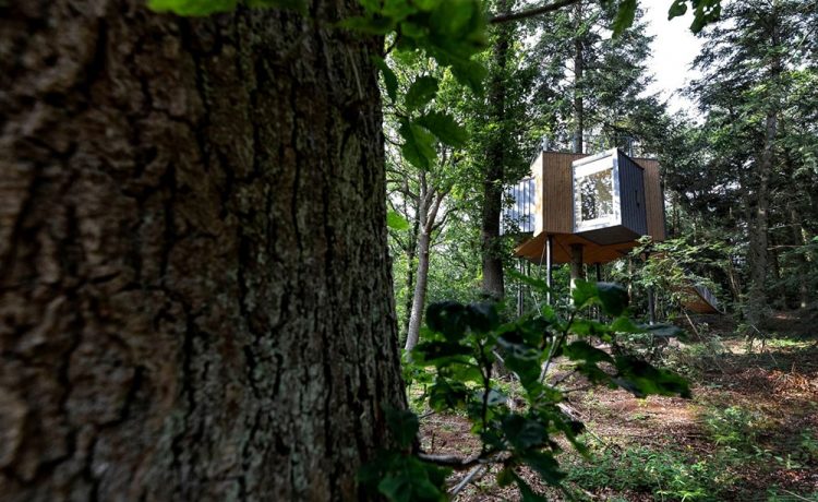 Поднятые на 8 метров от земли, домики обеспечат потрясающий вид на природные окрестности. По словам архитектора, они расположены на небольшой вершине холма с видом на луг, откуда открывается прекрасный вид на вершину леса, и максимально открыты для естественного освещения во второй половине дня.