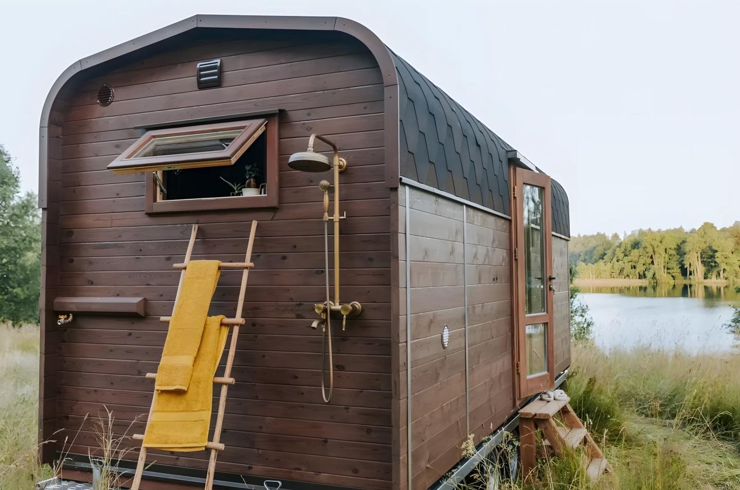 Мини-домик Nature Pod был спроектирован шведской компанией Vagabond Haven. Представленная модель построена на базе двухосного прицепа. Длина домика составляет всего 6 метров, что вполне соответствует европейским мини-домам. Дом построен без деревянного каркаса для снижения стоимости, имеет обшивку из композитной древесины, крышу из стекловолоконной черепицы и, по желанию, летний душ.