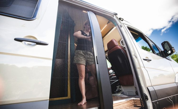Next Gen также включает дизельный обогреватель Webasto и съемную изолированную мягкую перегородку для отделения жилой зоны (кровати, диван, кухня, душевая комната) от кабины водителя (передние и задние сиденья). Эта «стена» помогает оптимизировать температуру в жилом помещении, и оснащена дверью на молнии для перемещения между «комнатами».