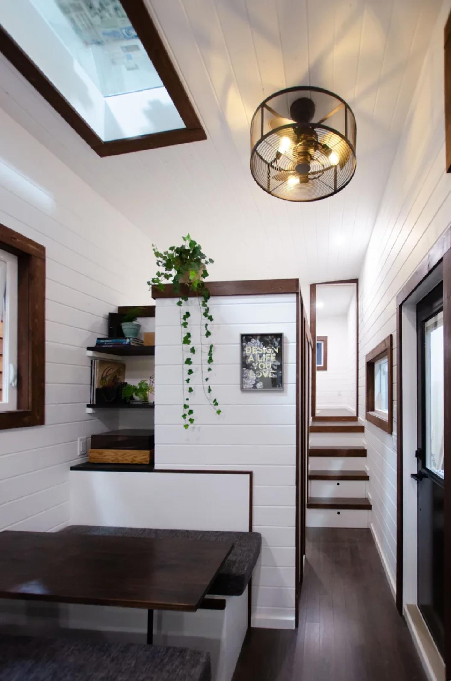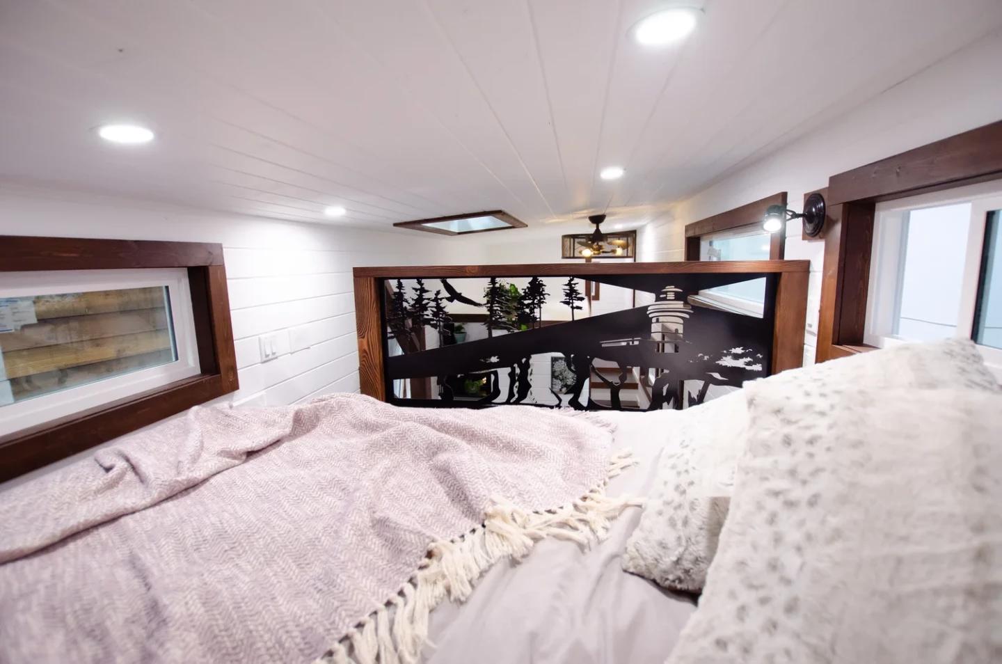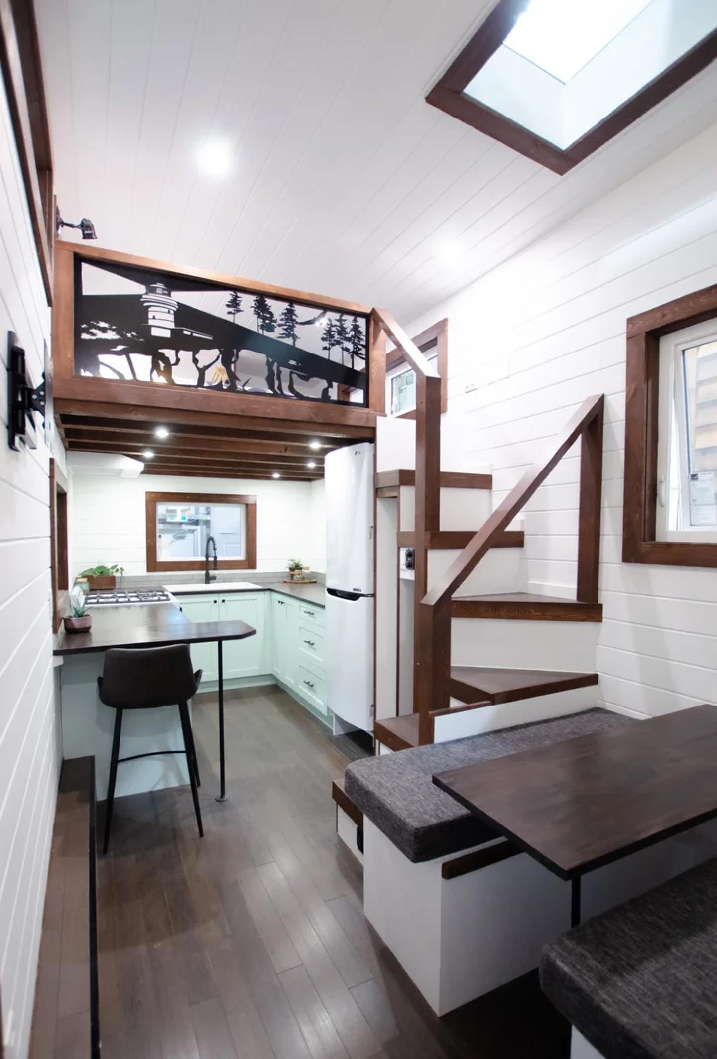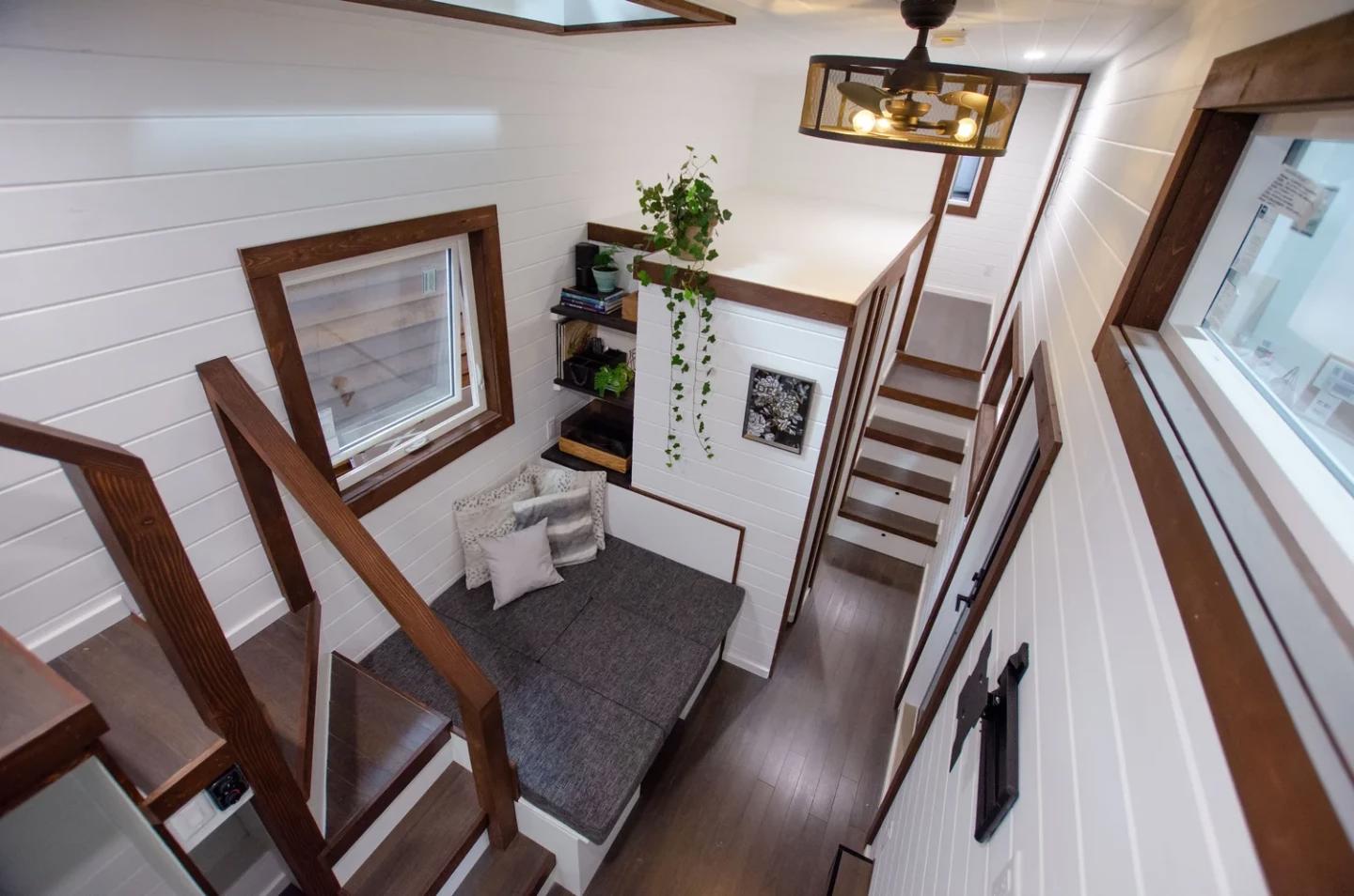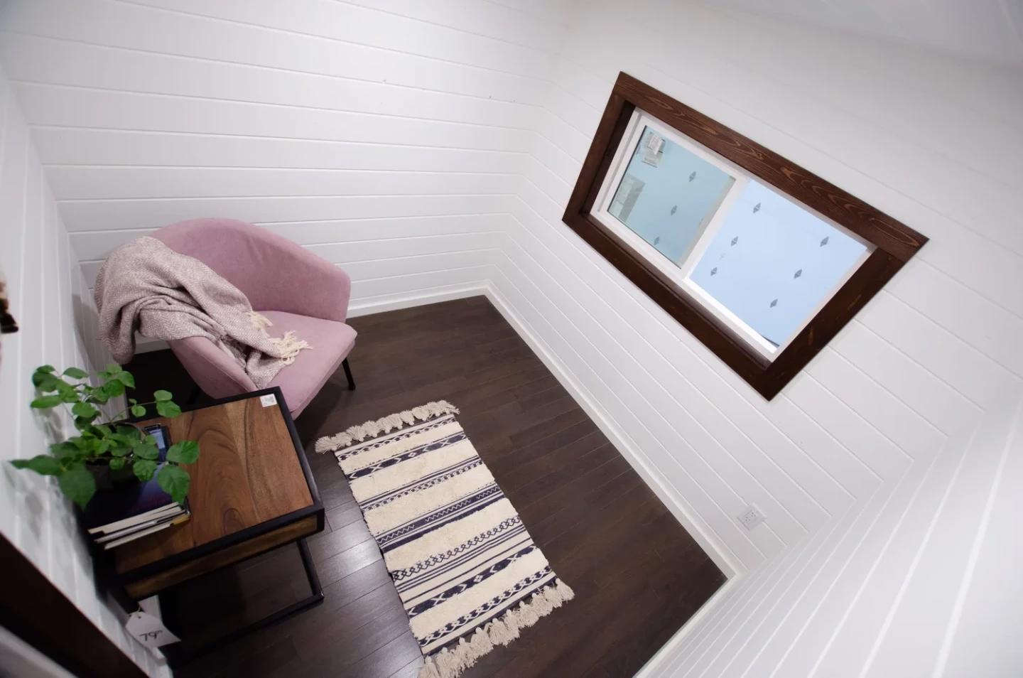 Спальные зоны распределены так, чтобы обеспечить максимум уединения. Основная спальня размещена на мансарде и доступна по лестнице с системами хранения. Дополнительная комната расположена в приподнятой части прицепа — она отлично подойдет для ребенка, кабинета или гостевой зоны. Такое зонирование делает Starling особенно удобным для семьи, позволяя каждому иметь собственное пространство даже в небольшом доме.