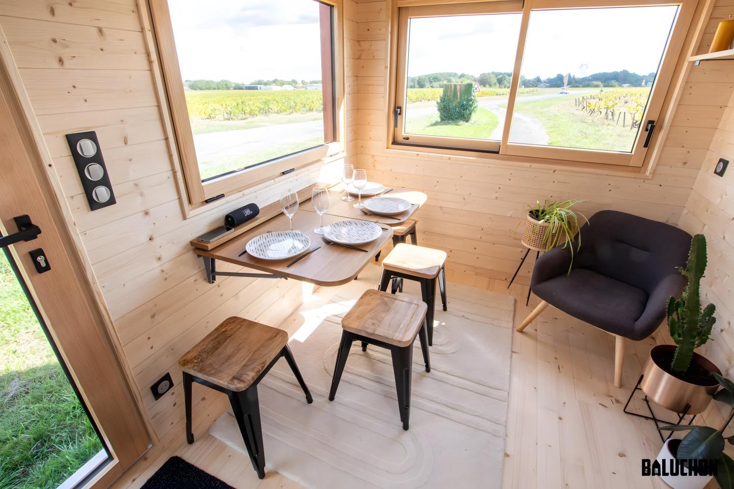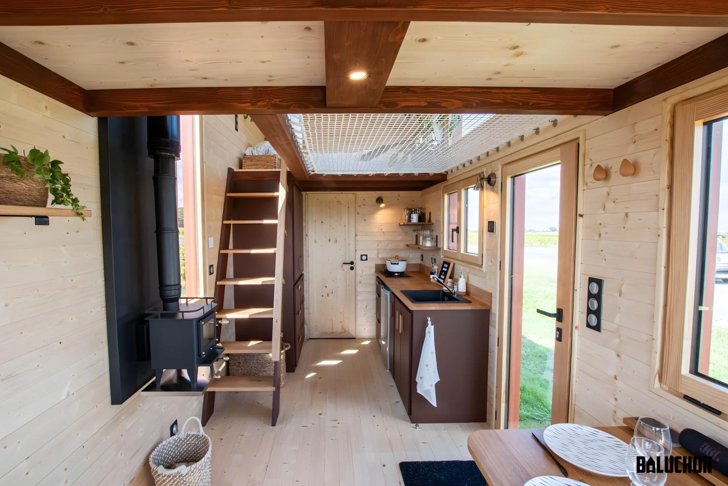 Мини-дом Tiny House Into the Woods спроектирован французской компанией Baluchon и следует эстетике предыдущих моделей компании. Он построен на базе двухосного прицепа и имеет длину 6 метров, что примерно соответствует среднему размеру мини-домика в Европе.