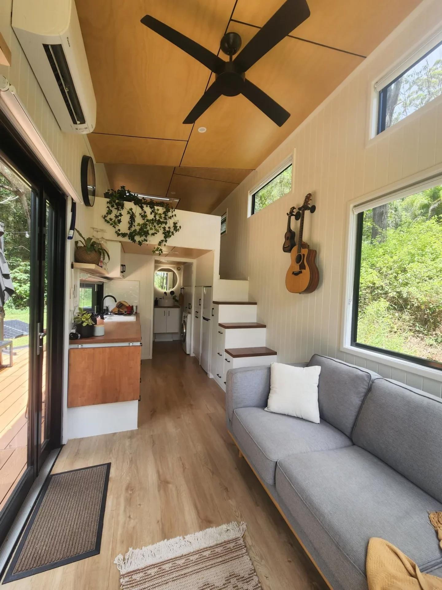 Мини-дом Currumbin создан для комфортного постоянного проживания на колесах и сочетает продуманную планировку с функциональными решениями. Несмотря на компактные размеры, он предлагает полноценные условия для жизни и может быть дополнен автономными системами и уличной террасой.