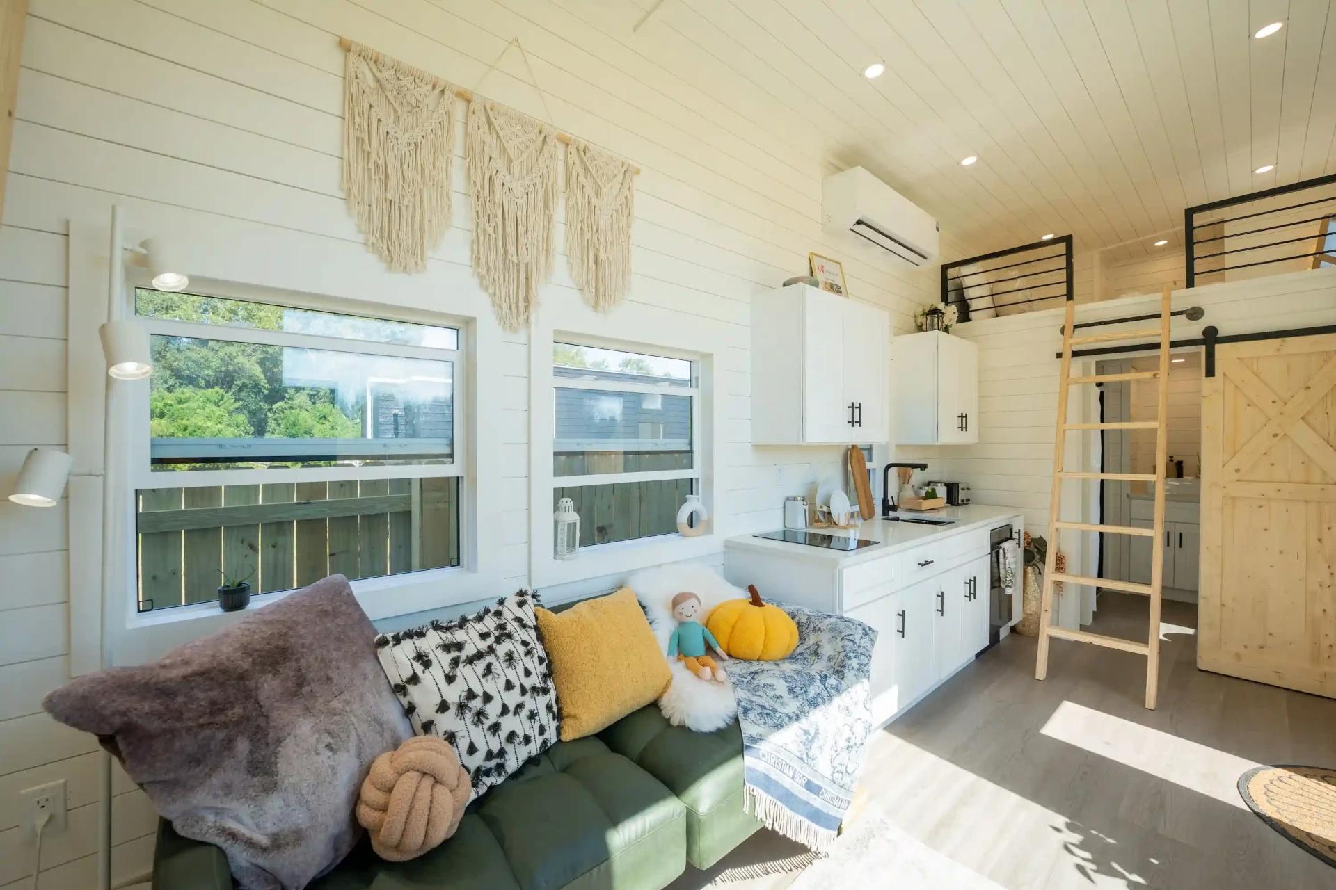 Компания Dragon Tiny Homes обычно создает очень компактные и доступные модели, но Webster – самый большой на сегодняшний день мини-дом компании. Благодаря просторному и светлому интерьеру, этот дом, который можно перевозить на буксире, идеально подходит для постоянного проживания на колесах и может вместить до шести человек.