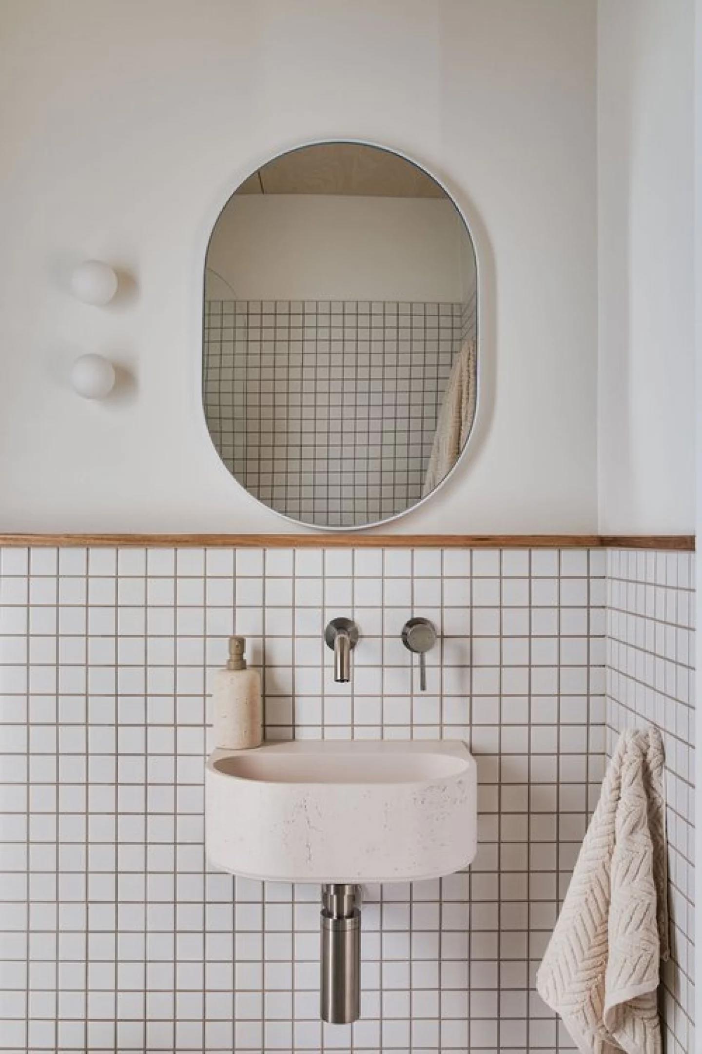 Ванная комната расположена на противоположной стороне дома от спальни и доступна через раздвижную дверь. В ней есть душ, бетонная раковина и туалет со смывом.