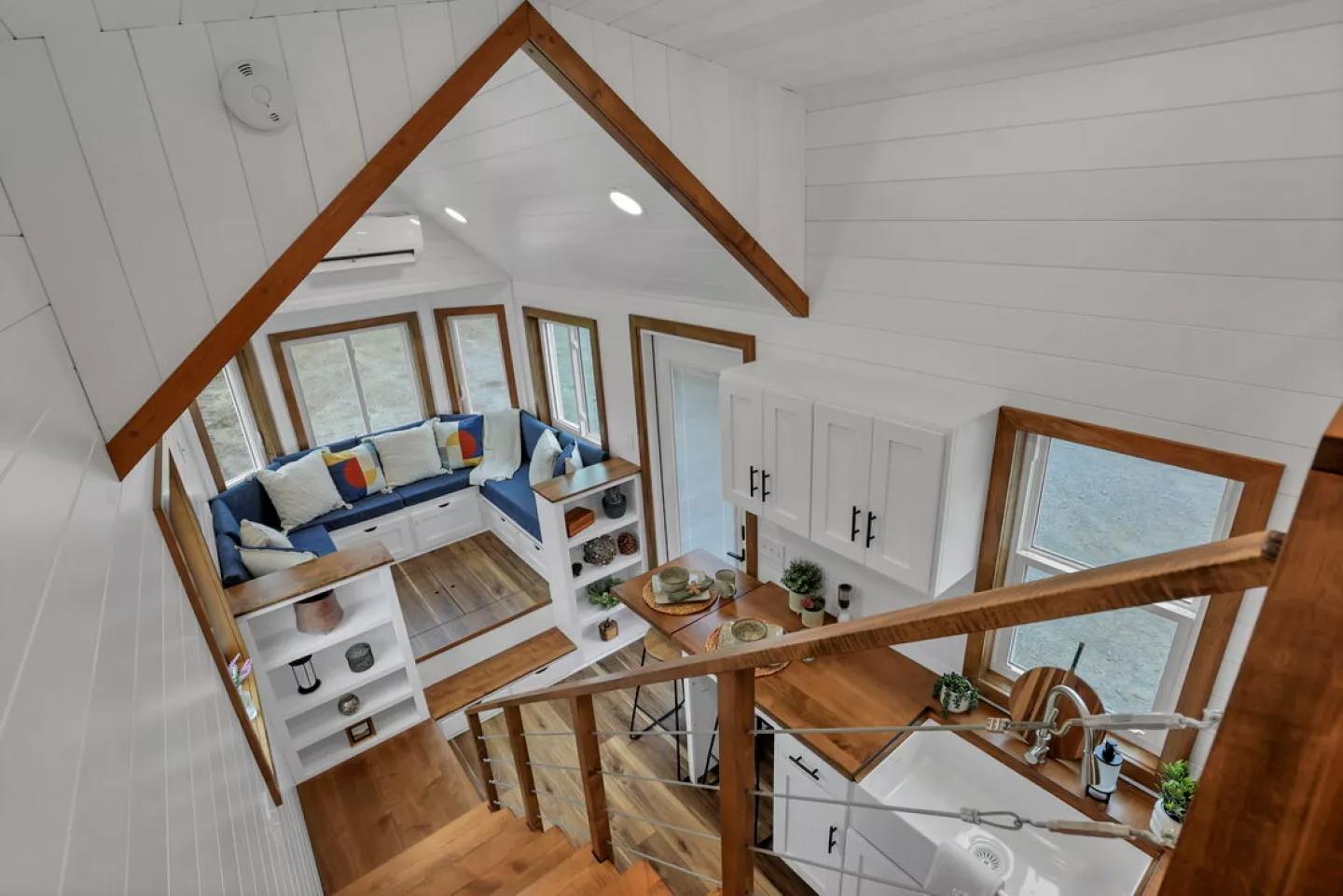 Снаружи мини-дом Tink отделан древесно-стружечной плитой, а крыша покрыта сталью. Дом имеет два входа, главный из которых ведёт в гостиную. Здесь расположена приподнятая U-образная зона отдыха, вмещающая до шести человек. Диван легко трансформируется в двуспальную кровать, а под полом, ступенями и сиденьями скрыты дополнительные места для хранения.