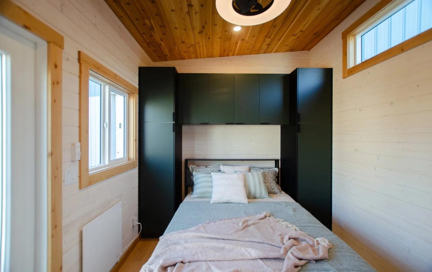 Благодаря расположению на первом этаже, в спальне высокие потолки, и в ней есть двуспальная кровать и множество мест для хранения. Также есть отдельная дверь, ведущая прямо на улицу. Кроме того, настенная лестница ведёт на чердак для хранения, расположенный над смежной ванной комнатой.