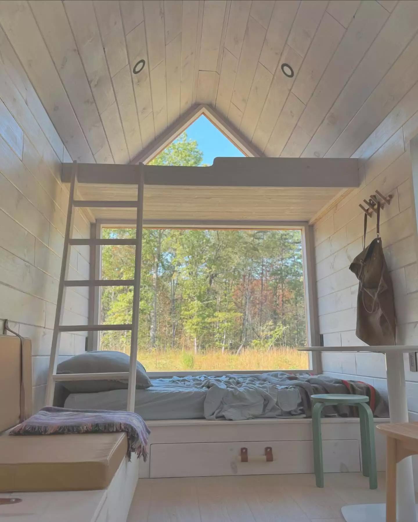 Спальня в мини-доме Weekender расположена сбоку от кухни и оборудована двуспальной кроватью. В качестве альтернативы, её можно дополнить двухъярусной кроватью на антресоли.