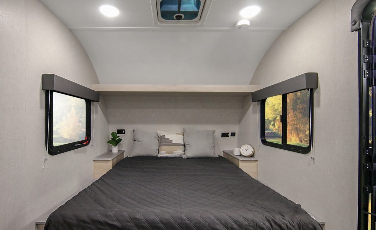 Еще одной особенностью трейлера, ориентированной на активную аудиторию туристов, — это выдвижная кухня, включенная в несколько вариантов планировки Hike. 2-конфорочная плита и раковина выдвигаются из заднего шкафа, что говорит о необходимости готовить не открытом воздухе, а не внутри трейлера. Боковой навес и внешние динамики дополняют открытое жилое пространство.