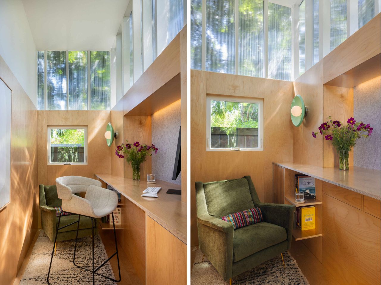 Иногда самые простые идеи приносят самую глубокую радость. Пара из Сиэтла заказала архитектурной студии Linework Architecture проект просторного помещения с двумя тихими и функциональными рабочими местами, которые позволили бы им продуктивно работать, не теряя связи с семьей.