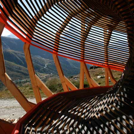 Расположенная рядом с озером Стелли на высоте 2536 метров над уровнем моря, смотровая площадка Evolver является, по сути, архитектурных артефактом, который органично вписался в окружающую среду Церматта. Это очень красивое и простое сооружение, построенное с использованием только лишь одного экологически чистого материала – дерева – станет отличным местом для тех, кто желает получить удовольствие от отдыха на природе.