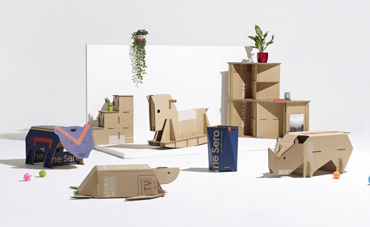 Финалистка конкурса Dezeen x Samsung Out of the Box, Эбигейл Уайтлоу создала модульную тумбу, использовав для этого коробки из-под телевизора Samsung The Frame.