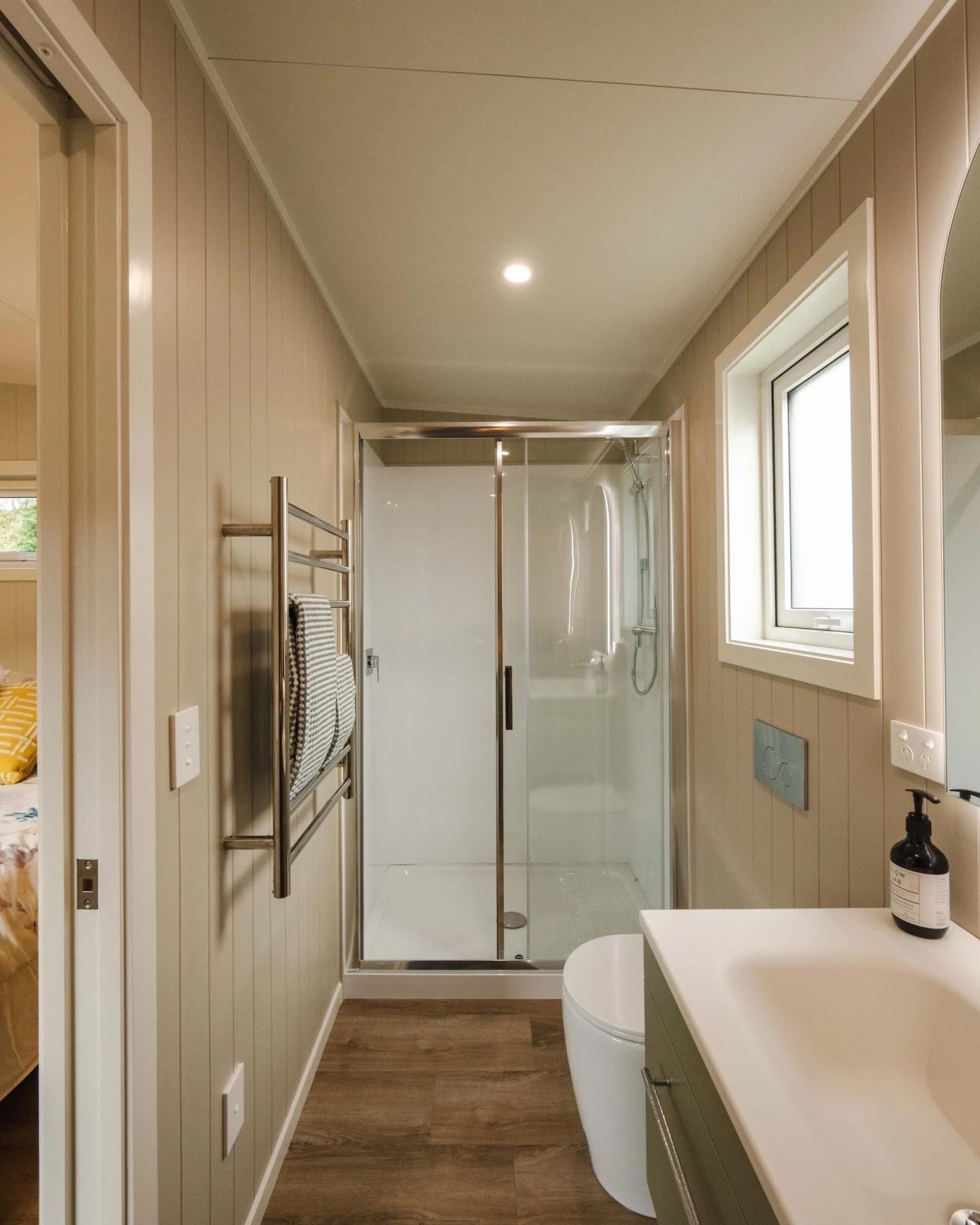 Ванная комната расположена рядом со спальней и оформлена как приватное пространство владельцев. В ней есть душевая кабина со стеклянным ограждением, современная раковина с тумбой и туалет. Точная стоимость именно этой версии не раскрывается, но очевидно, что она отражает высокий уровень качества, продуманный дизайн и комфорт, сравнимый с полноценным домом.