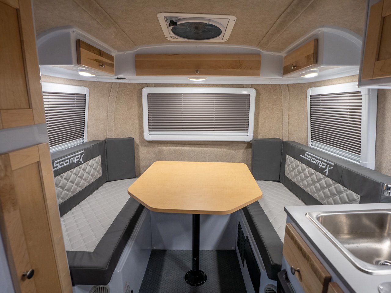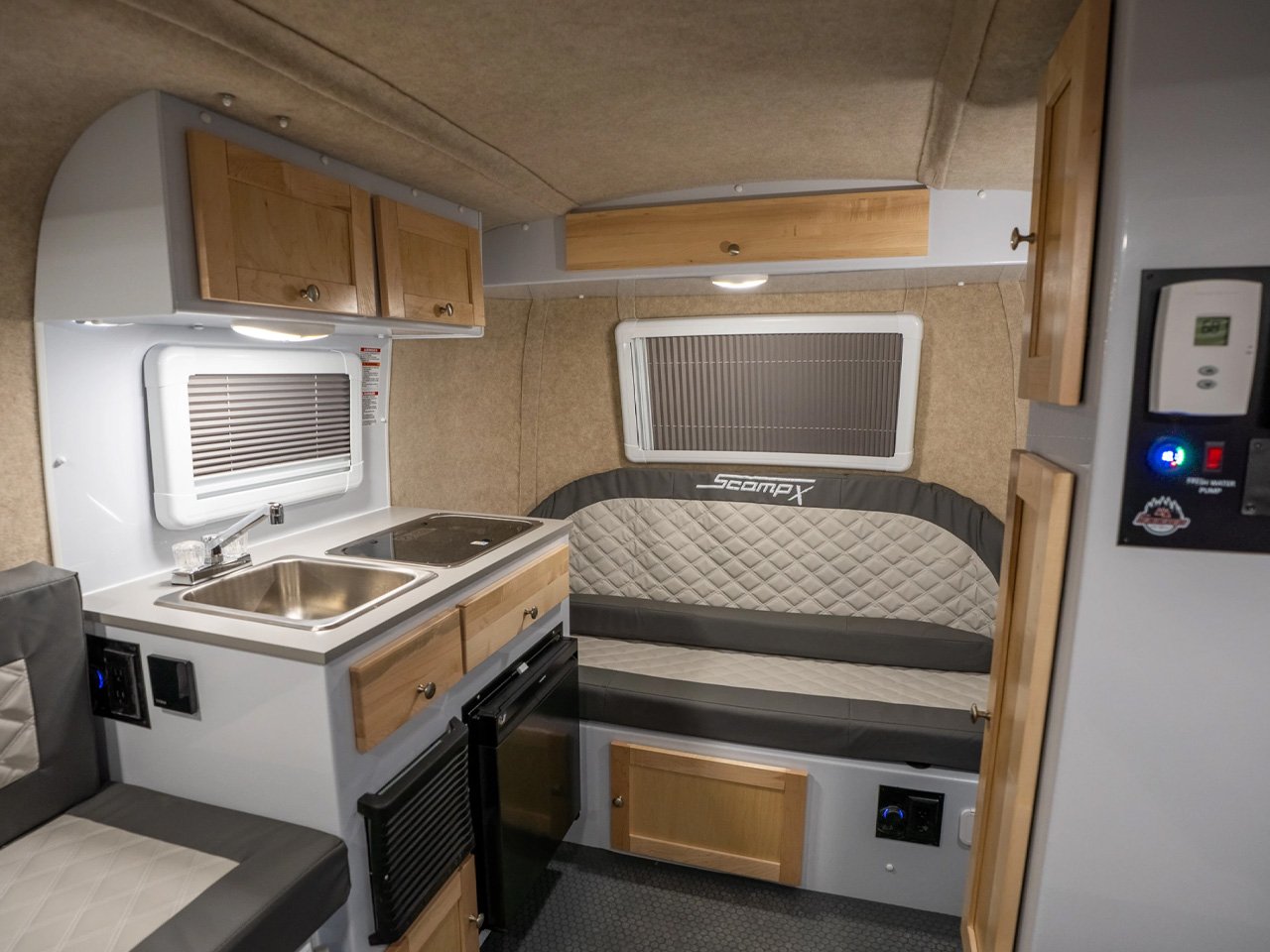 Компания предлагает два варианта планировки. В Trek отсутствует ванная комната для увеличения жилого пространства. В Altitude включена ванная комната в передней части салона. Цена на Scamp X пока официально не объявлена, хотя улучшения предполагают более высокую цену по сравнению со стандартными моделями.