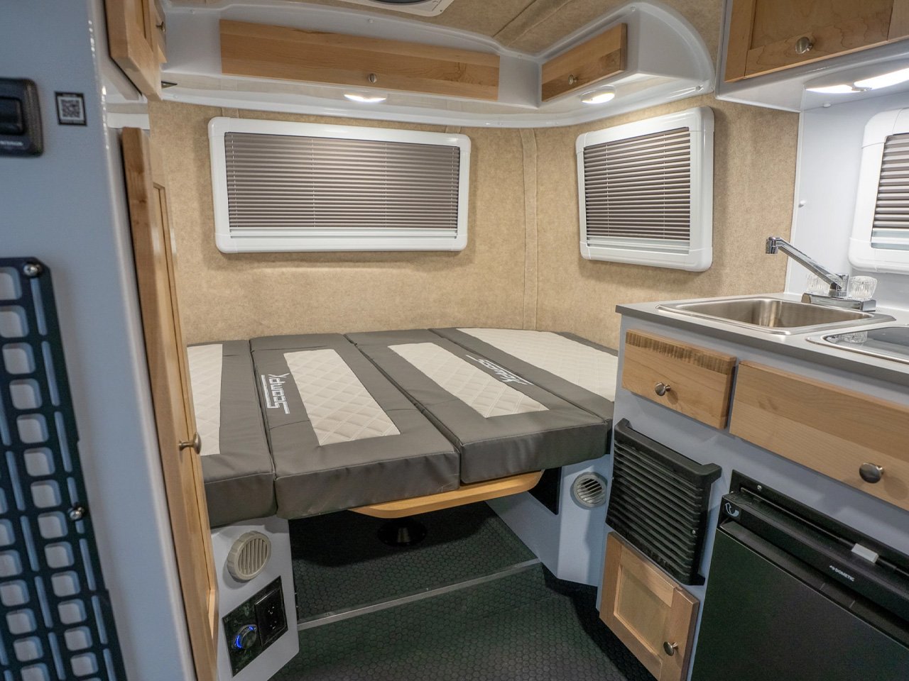 Компания также обновила и интерьер салона, заменив стандартную планировку обеденной зоны на U-образную. Новые подушки дополняют обновлённый дизайн столешницы, а резиновое покрытие пола по всему салону гораздо лучше выдерживает грязь, чем традиционное ковровое покрытие или винил. Блок кондиционера спрятан под задней скамьёй в обеденной зоне, освобождая ценное пространство на стене.