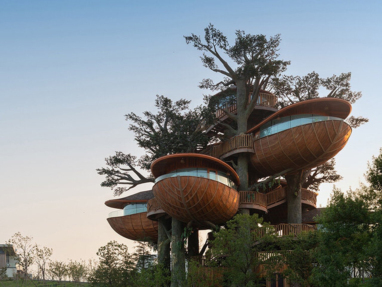 В китайском парке развлечений «Сэнбо» зарождается новое архитектурное видение. Проект «Лесные гнезда» (Forest Nests Treepod), разработанный местной дизайн-студией Doarchiwow, меняет само понятие модульного строительства, превращая сборные здания в искусство.