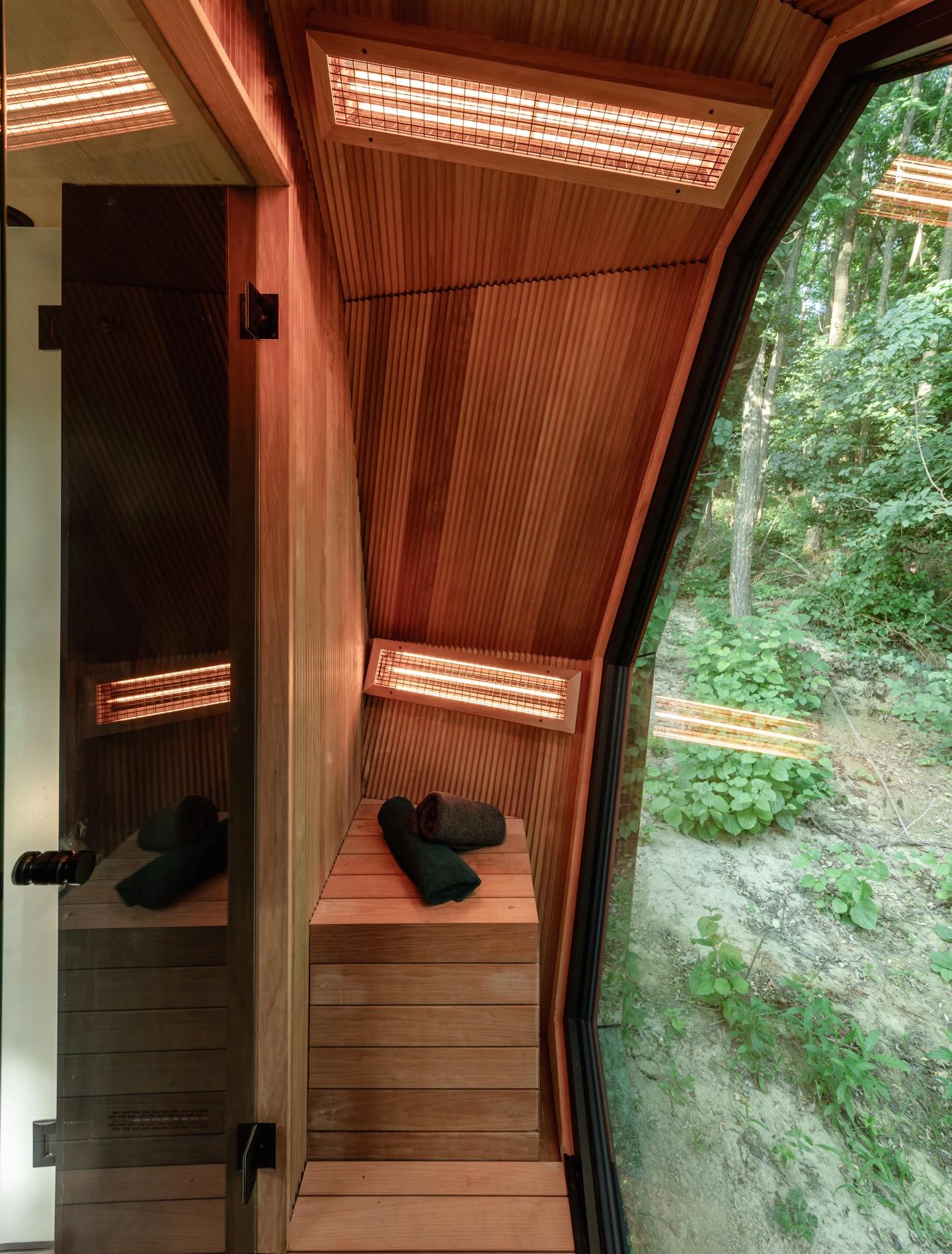 В наши дни миниатюрные дома могут похвастаться всевозможными домашними удобствами, но эта привлекательная модель – единственная, которая может похвастаться собственной сауной. Дом отличается необычным зеркальным фасадом и компактной планировкой, которая отлично подходит для краткосрочного проживания до двух человек.