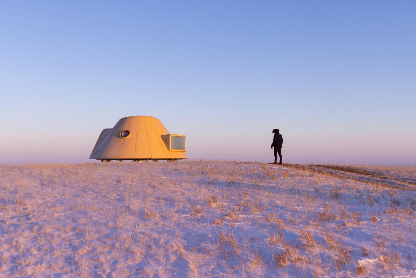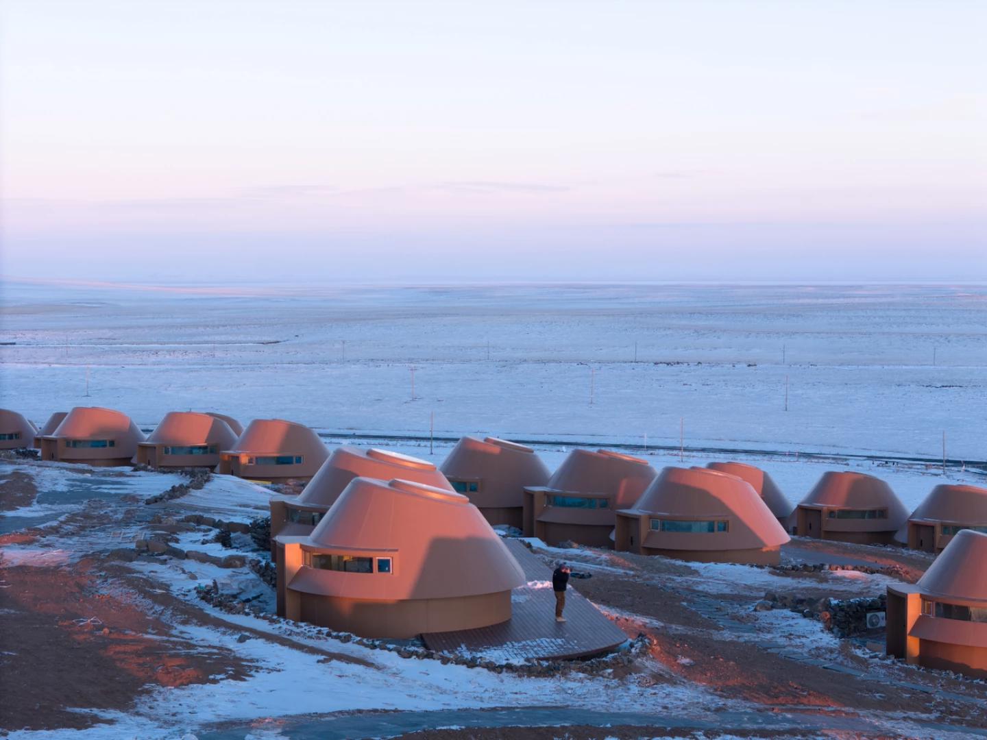 Рядом на холме находится прототип одного из домиков, созданный на раннем этапе проекта. Сегодня отель является частью туристического комплекса Baiyinkulun Steppe & Volcano Tourism Resort и демонстрирует современный подход к освоению природных территорий, где архитектура восстанавливает окружающую среду.