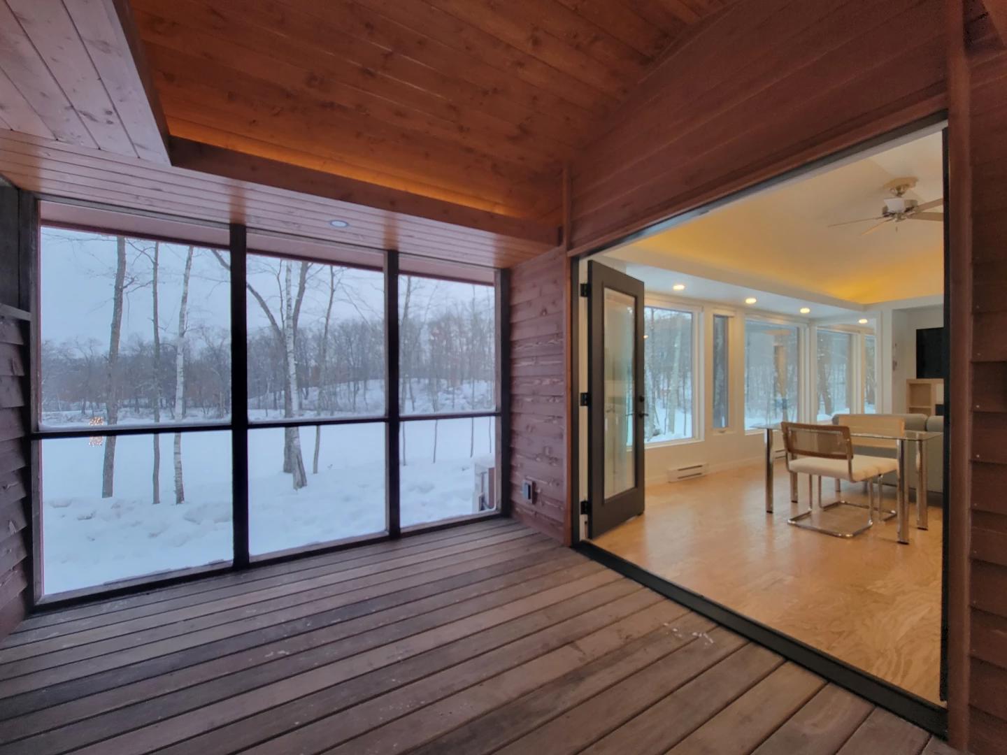 Вход начинается с закрытой веранды, которая служит уютной переходной зоной между улицей и интерьером. Это пространство можно использовать как дополнительную зону отдыха. Уже здесь ощущается главная особенность дома — обилие естественного света и открытость.