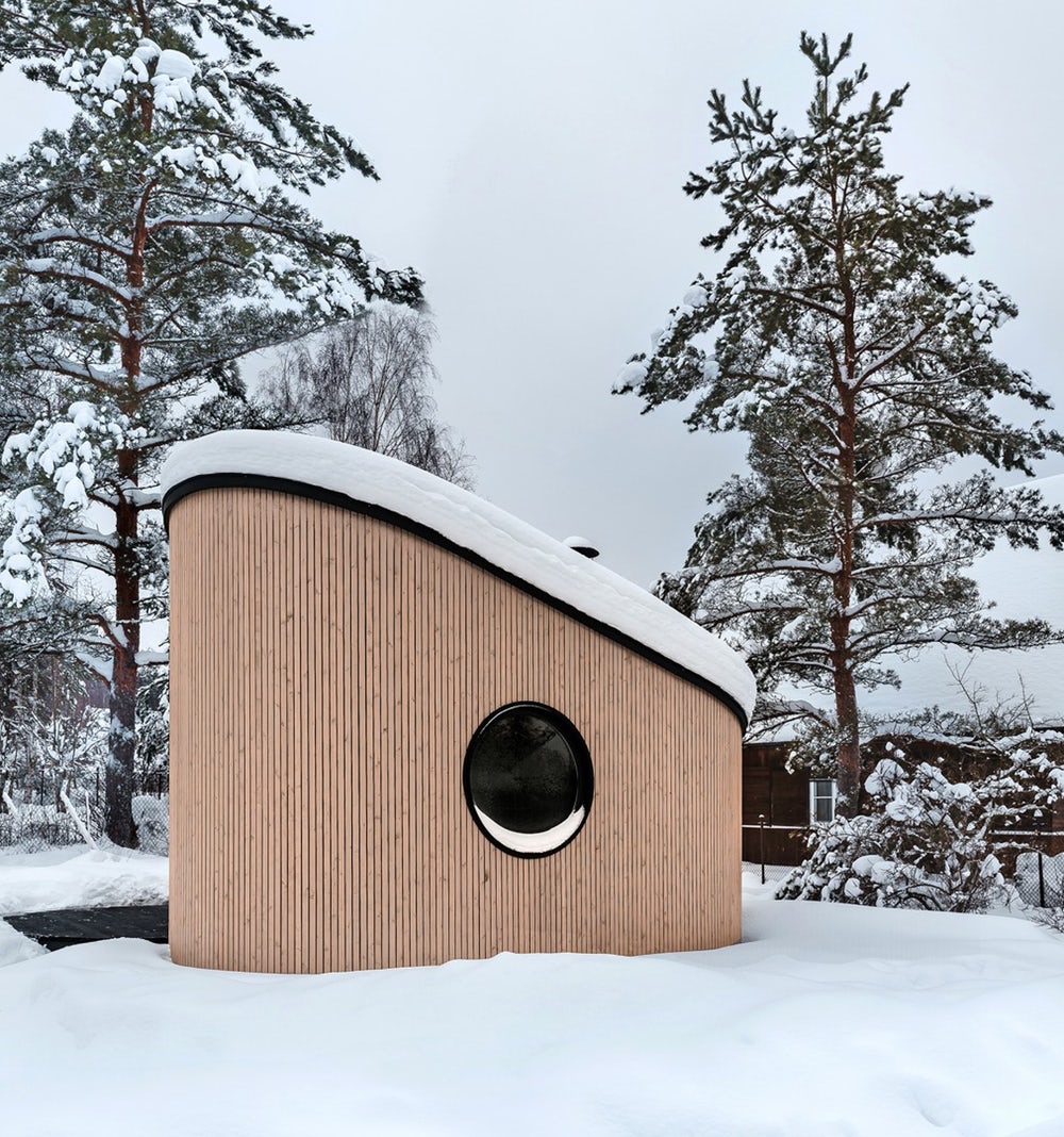 Российская архитектурно-дизайнерская фирма SA Lab, расположенная в Санкт-Петербурге, недавно представила небольшой элегантный жилой модуль, который может использоваться в самых различных целях. Представляя собой осовремененный вариант классической финской беседки для барбекю, оригинальный прототип Flexse имеет наклонный овальный дизайн и облицован тонкими деревянными панелями.
