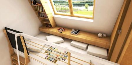 Высота потолков в доме позволяет создать сногсшибательный интерьер, а большое пространство над кухней архитекторы использовали для создания второго этажа, на котором могут быть размещены гостевая комната, детская или домашний офис. Остальная часть дома состоит из довольно просторных помещений гостиной, столовой, кухни и кабинета, а также собственной спальни и ванной комнаты для хозяев.