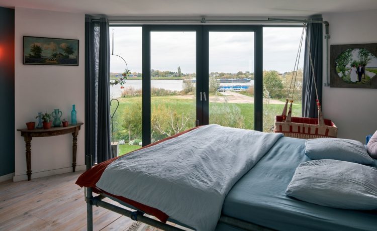 В водонапорной башне диаметром 9 метров живут две семьи, каждая состоящая из 4-х человек. Шестиугольная конструкция разделена на три части: садовую комнату на первом этаже и два двухуровневых жилых апартамента, каждый из которых имеет уникальную планировку и вид. Из одного дома открывается вид на реку, а из другого – на польдерные земли.